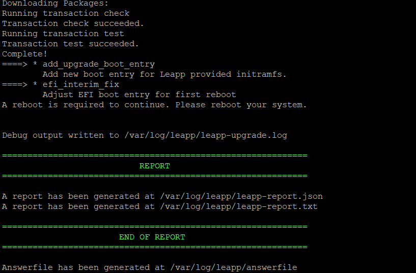 Note: If preupgrade check gives error or not showing green report then please resolve errors , you can check the errors from /var/log/leapp/leapp-report.txt .