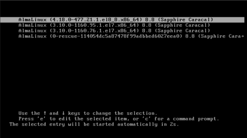Once the upgrade process done, it will reboot automatically and you will be welcomed by the AlmaLinux 8/ Rocky Linux 8 GRUB menu at boot time.