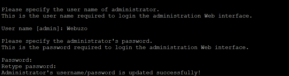 After running above command it will ask to enter UserName and Password to reset