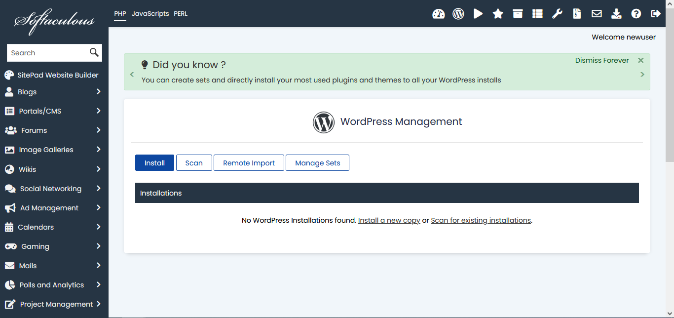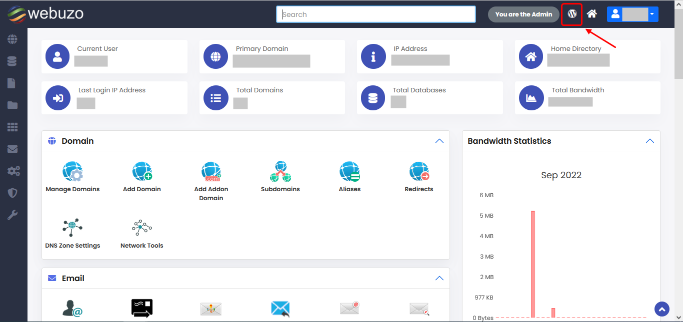 Go to Webuzo End User Panel, on the top right corner click on the WordPress logo.