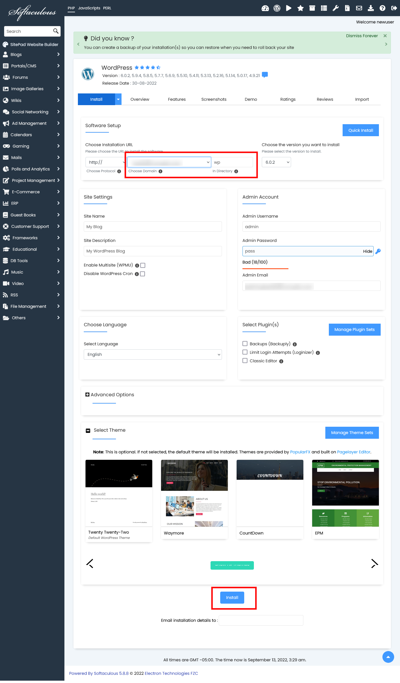 Click on Install and select the domain from dropdown list and fill the directory in which you want to install a WordPress site.