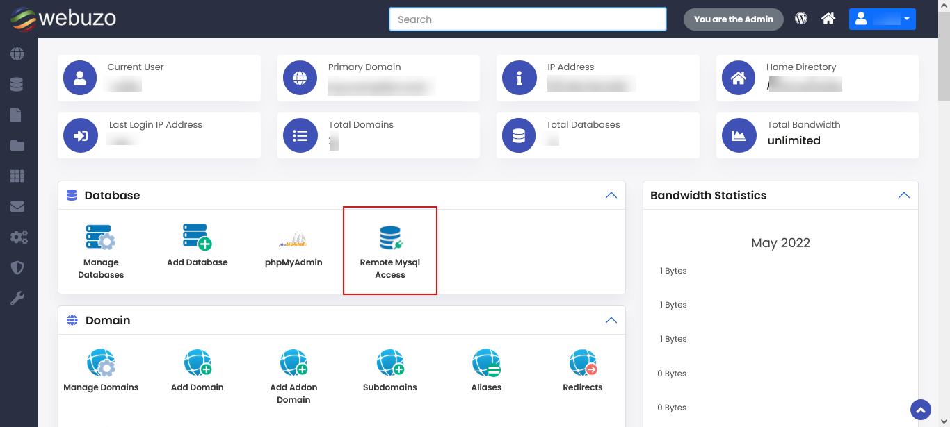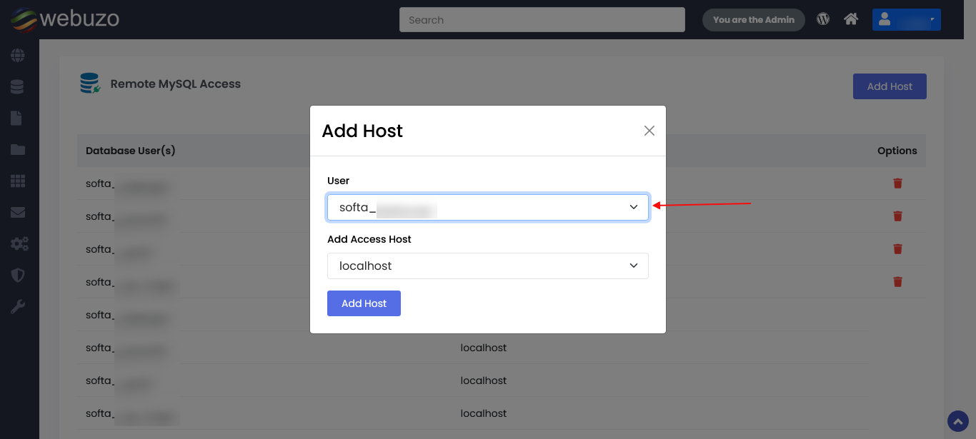 This guide will show you how to add Remote MySQL Access in the webuzo enduser panel.