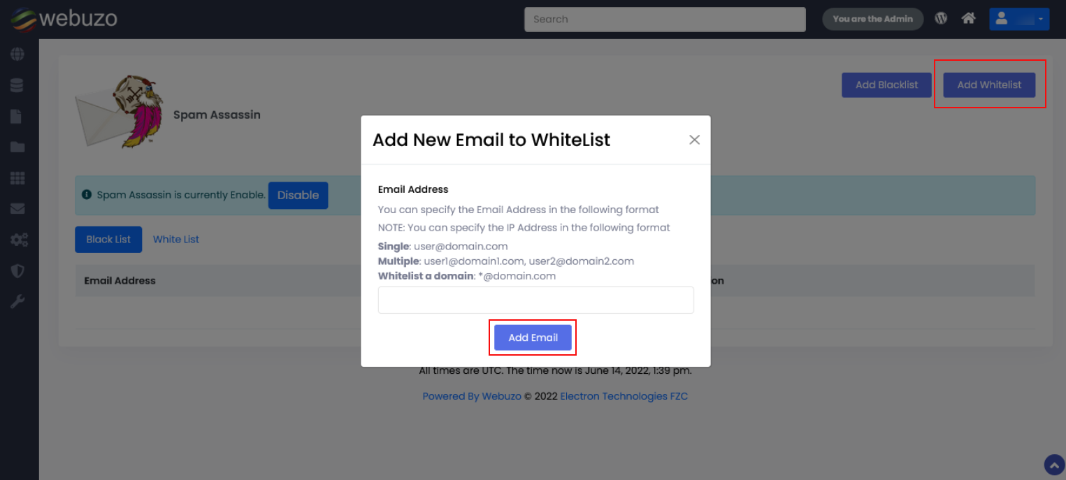 Click on Add Whitelist > Enter an email > click on Add Email.