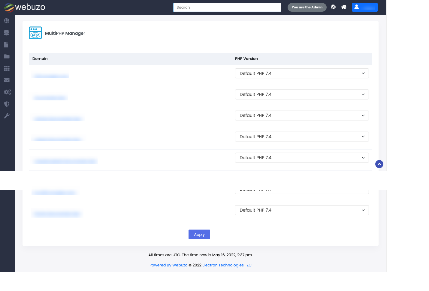 Select the version you want to use and click on Apply, it will set the PHP version to that particular domain.