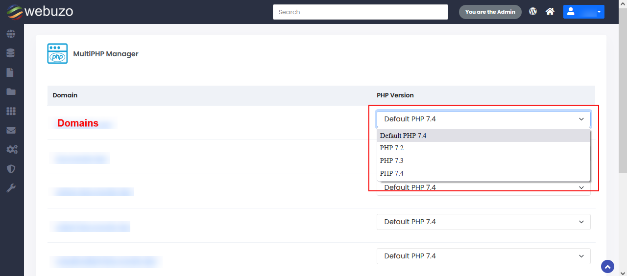 Go to Webuzo Enduser Panel > Configuration >MultiPHP Manager