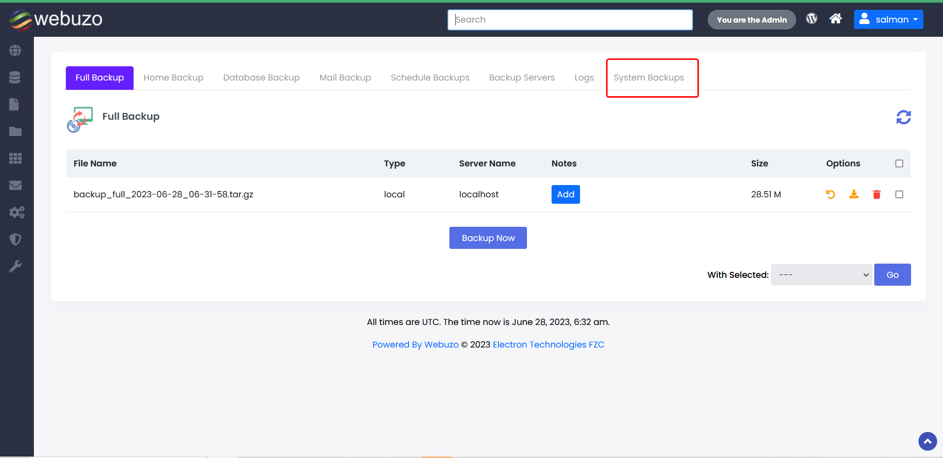 1) [Feature] Admin Backups can now be restored by endusers under the new System Backups wizard.