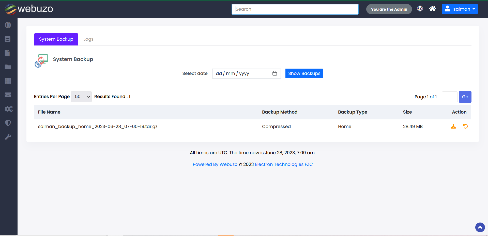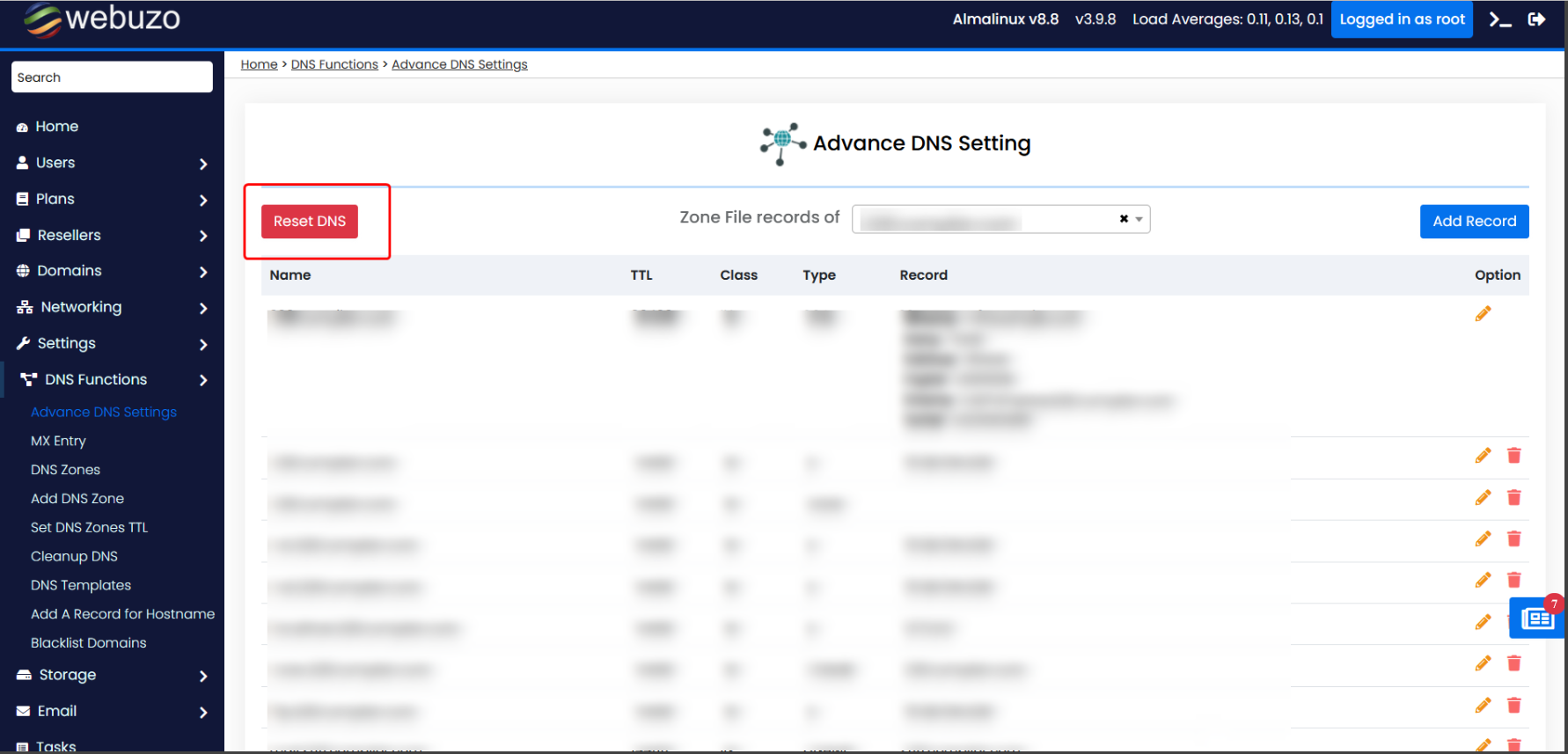 8) [Improvement] While restoring from a Webuzo Backup the DNS records were not being restored. This will now be done with the new improvement.