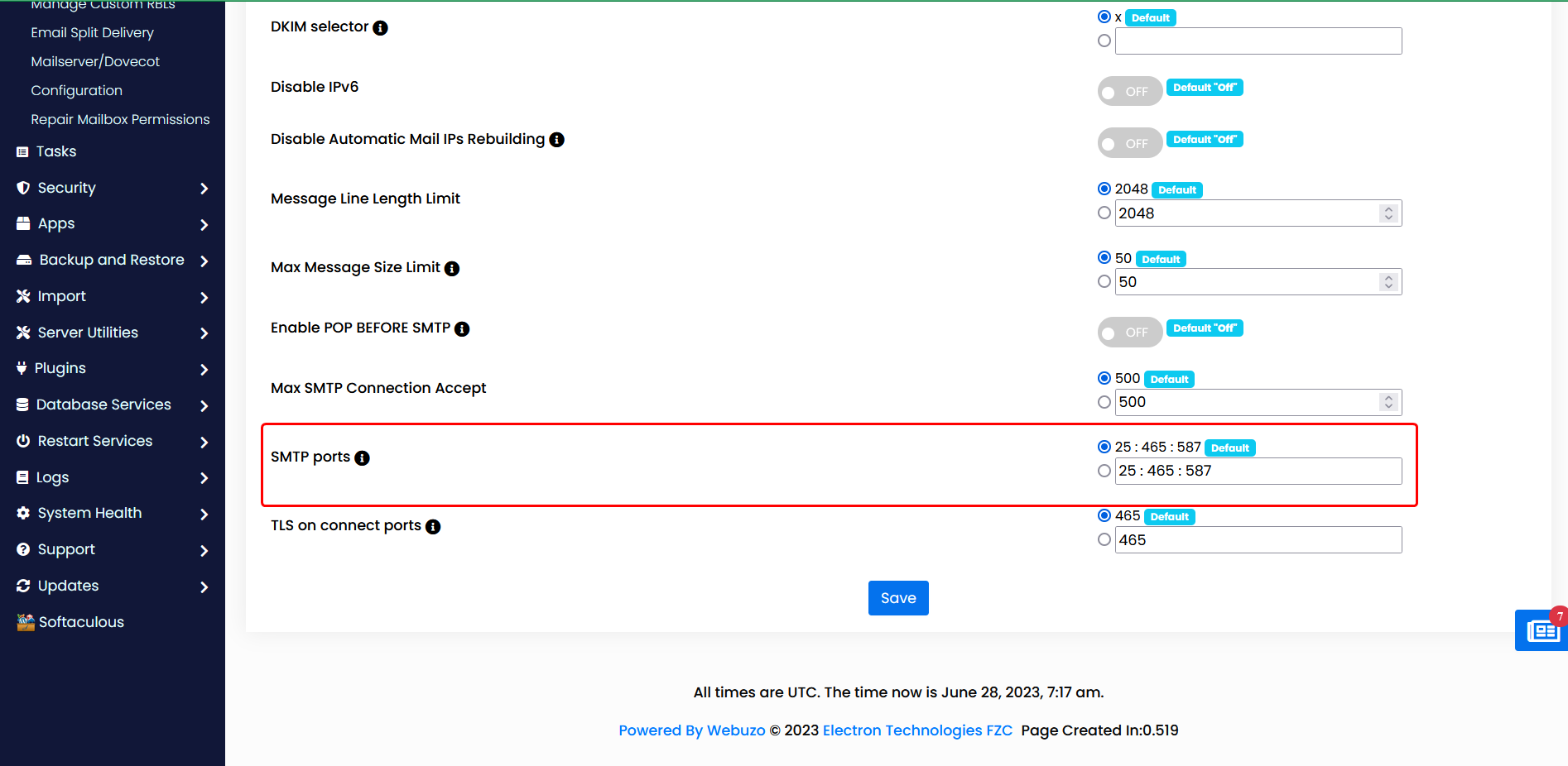 4) [Feature] Added support for custom SMTP ports for EXIM.