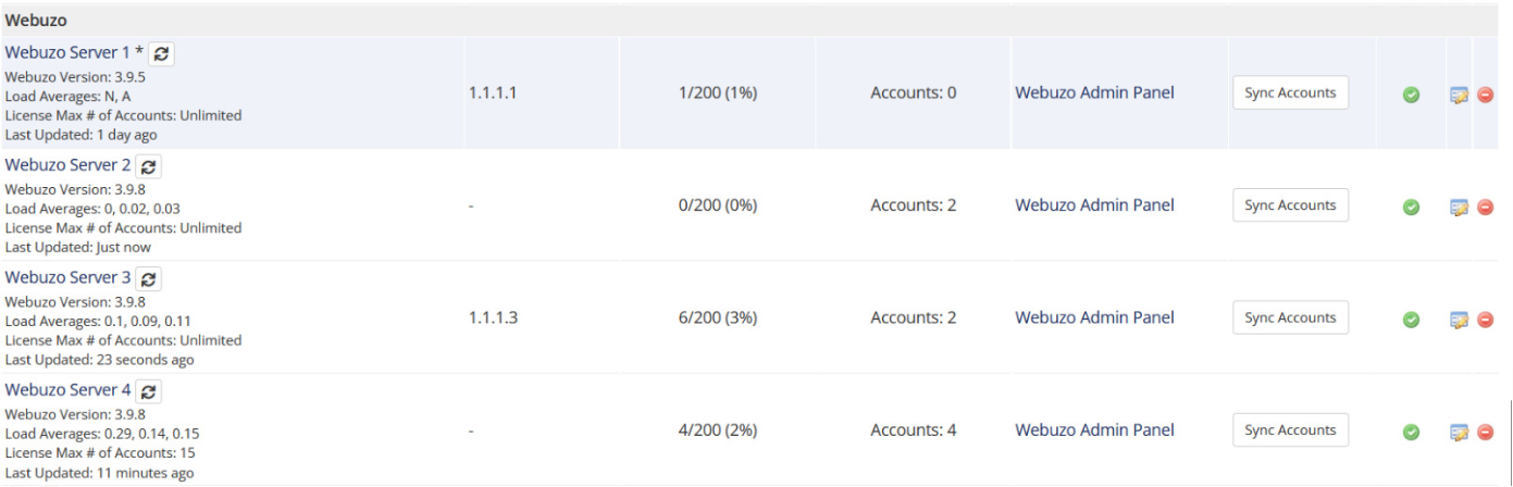5) [Feature] Added more features to the WHMCS module which include Webuzo server details like version, load average, max accounts as per license and Sync Accounts between WHMCS and Webuzo server