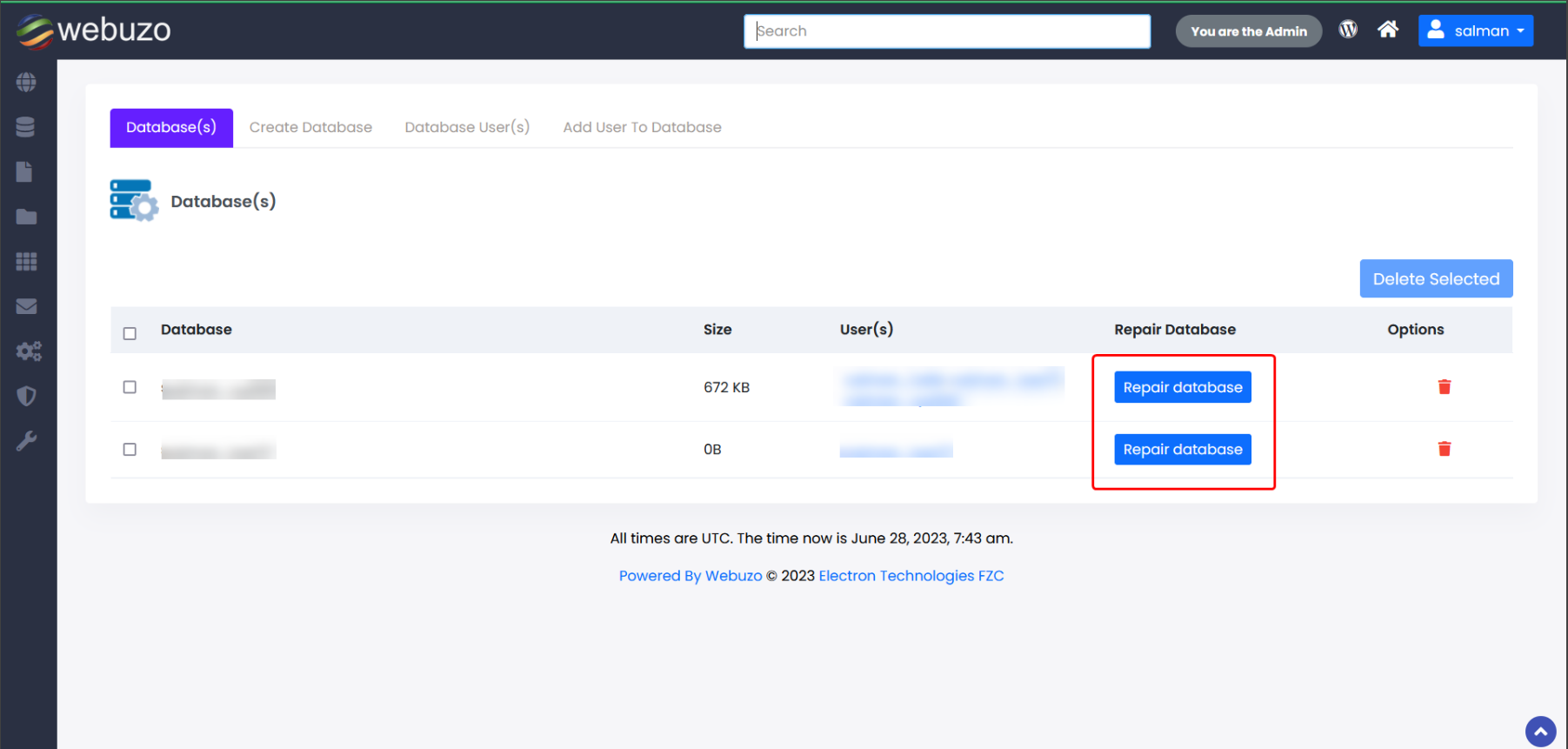 9) [Improvement] Added option to repair a Database tables in Enduser.