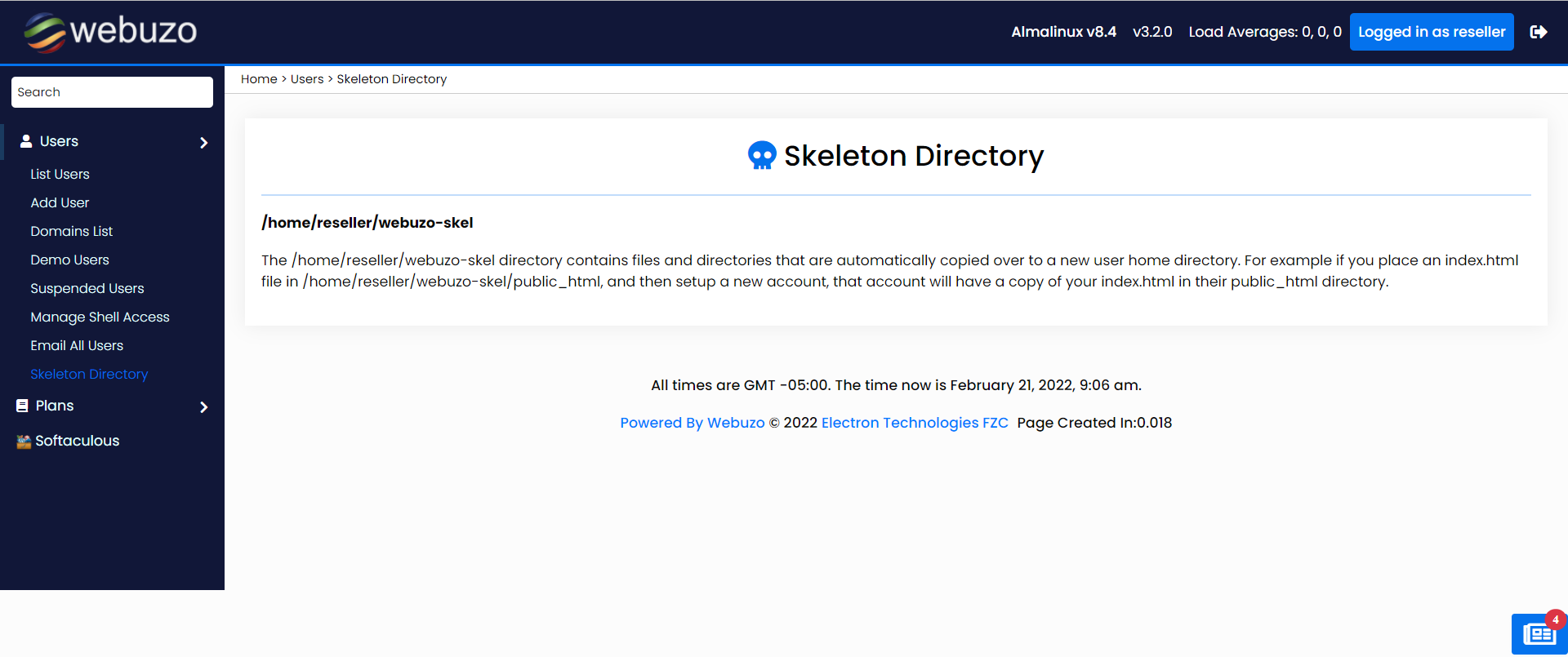 - [Feature] Skeleton directory feature is now added for admin and reseller(s). It will contain files and directories that will be automatically copied over to a new user home directory.