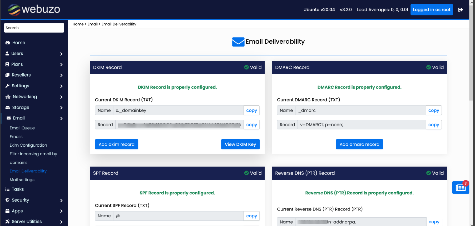 - [Feature] Email deliverability wizard is now available in the Admin Panel for the servers hostname. Now Admin can manage the DKIM/DMARC/SPF/PTR records for the server hostname.